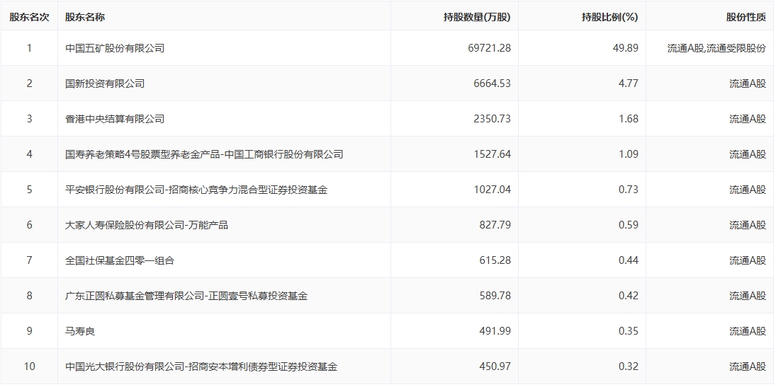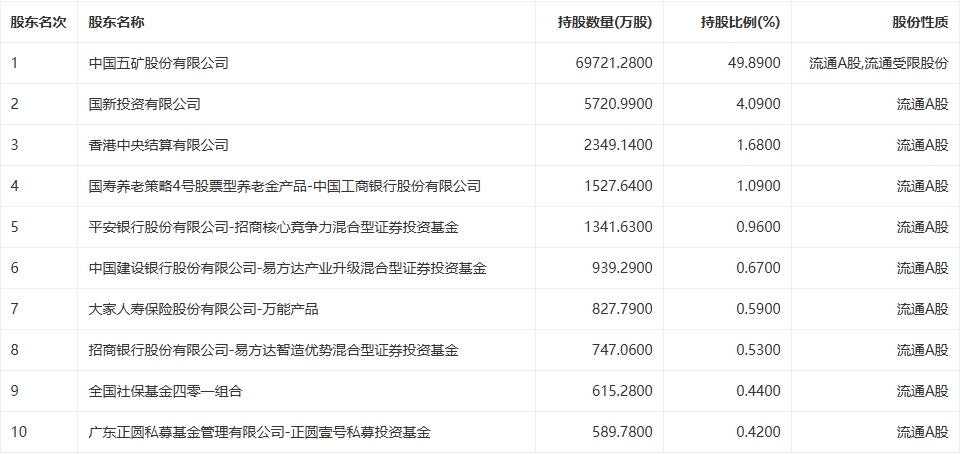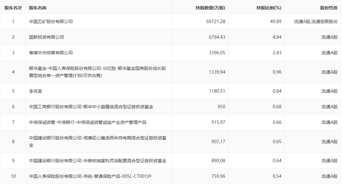 十大股东